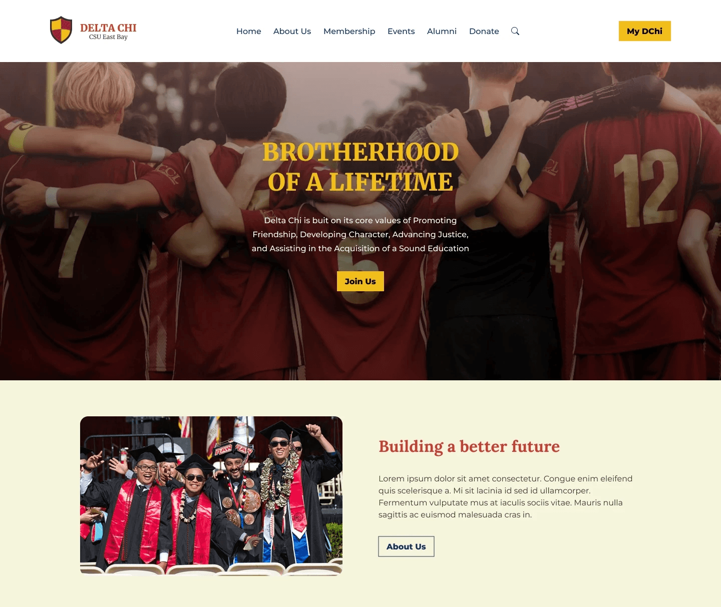 A fraternity website designed to help students discover Delta Chi, join events, and stay connected