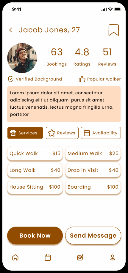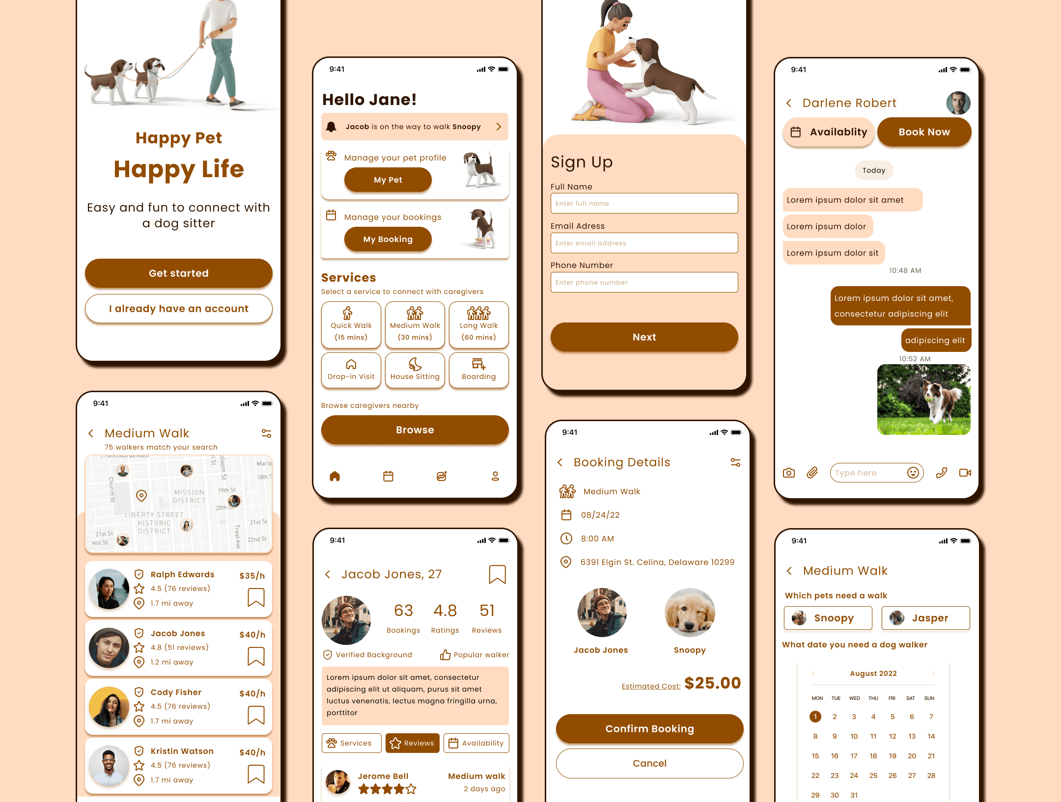 A mobile app designed to connect busy dog owners with professional dog walkers in their local area